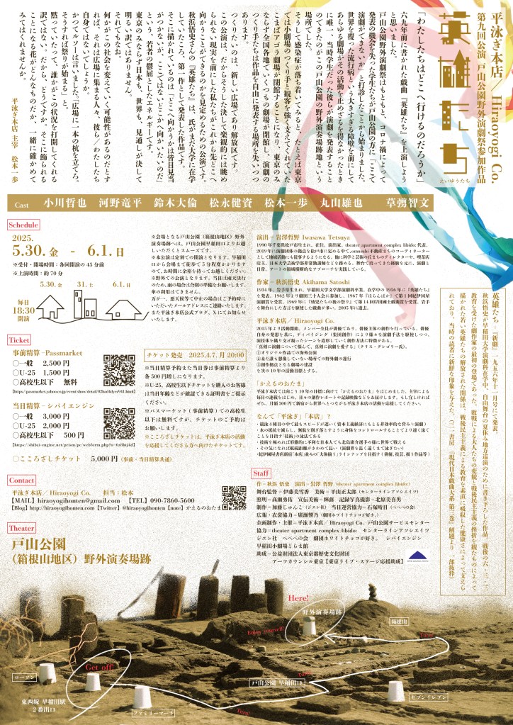 →【平泳ぎ本店『英雄たち』演出ならびに上演時間変更のお知らせ。】(2025/5/26)
